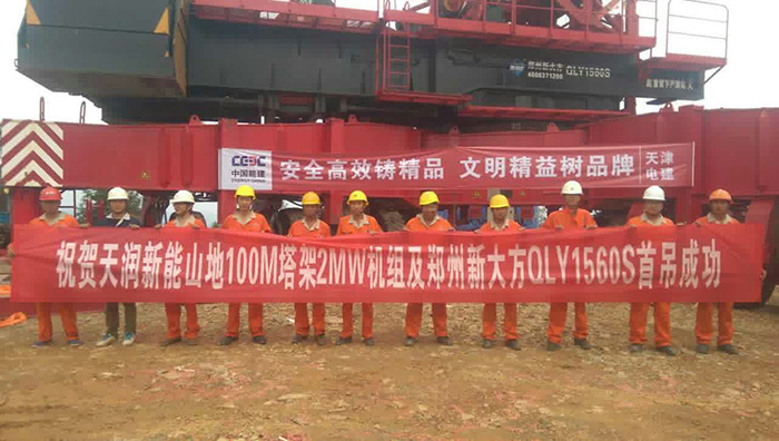 最新型风电起重机QLY1560S完成金风科技首台100米全钢高塔架机组吊装